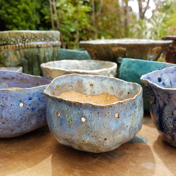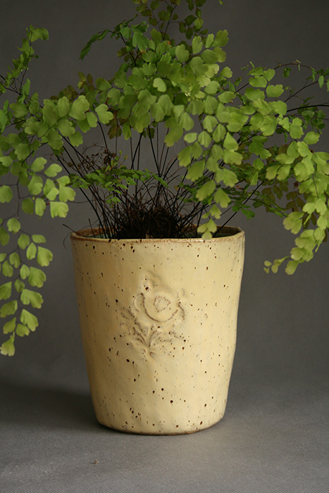 Made by hand and glazed in a variety of colours, these pots are generally intended for houseplants. The cover pots have no hole in the base, so that the purchased plant can be placed inside without needing to remove the plastic pot and water can be poured directly in. The houseplant can easily be replaced if it doesn’t survive.